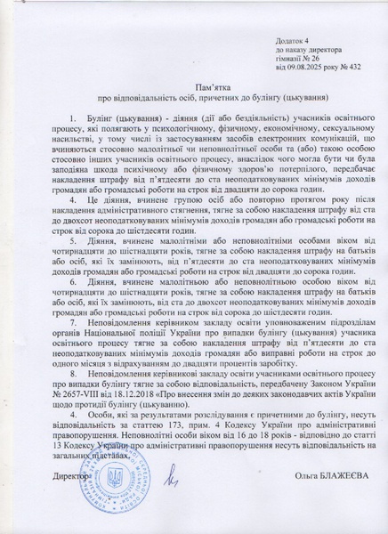 Пам'ятка про відповідальність осіб, причетних до булінгу (цькування)