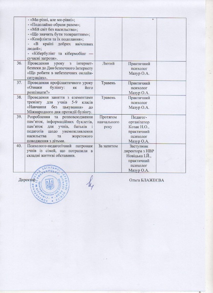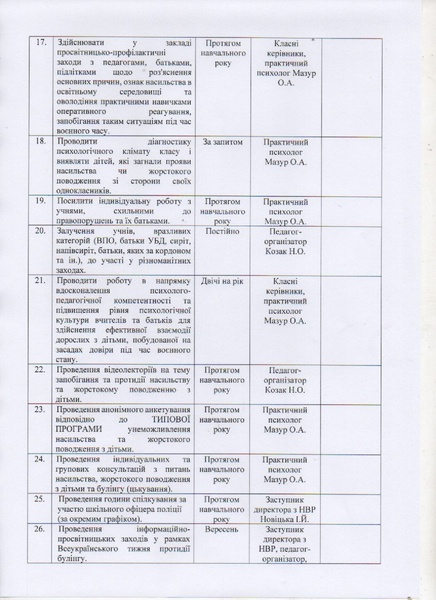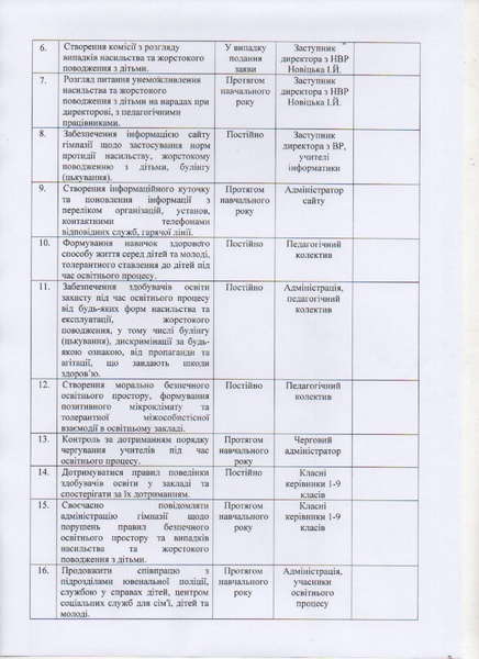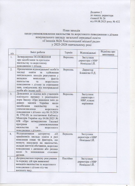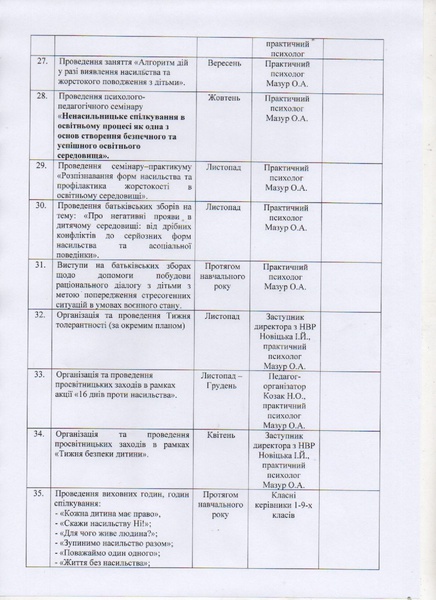План заходів щодо унеможливлення насильства та жорстокого поводження